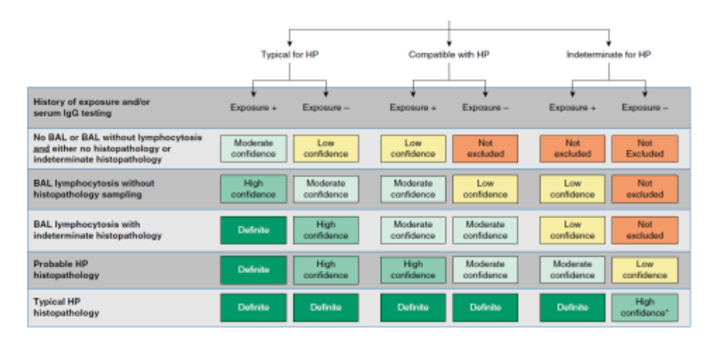 Fernández Pérez ER, Travis WD, Lynch DA. Diagnosis and Evaluation of Hypersensitivity Pneumonitis. Chest 2021;160(2): e97-e156.