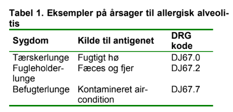 hvervseksponering eller ukendt agens. Det afgørende i diagnostikken er herefter at afklare om der er fund ved den objektive under søgelse, som styrker mistanken om AA og at HRCT er foreneligt med AA.